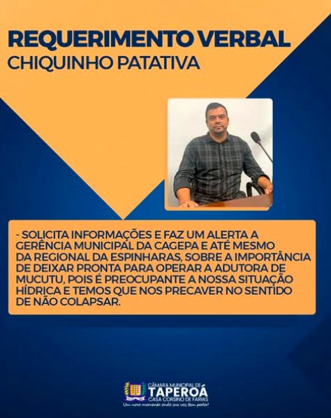 A Câmara Municipal de Taperoá dentro da sua normalidade administrativa e legislativa, convoca a todos…