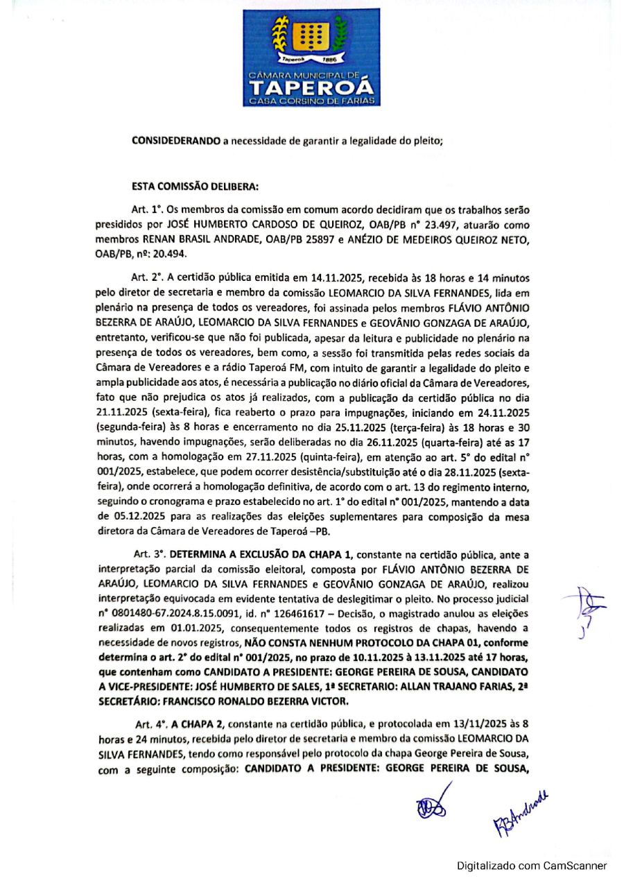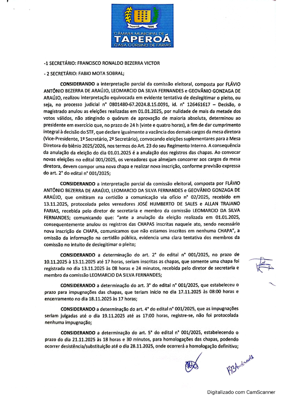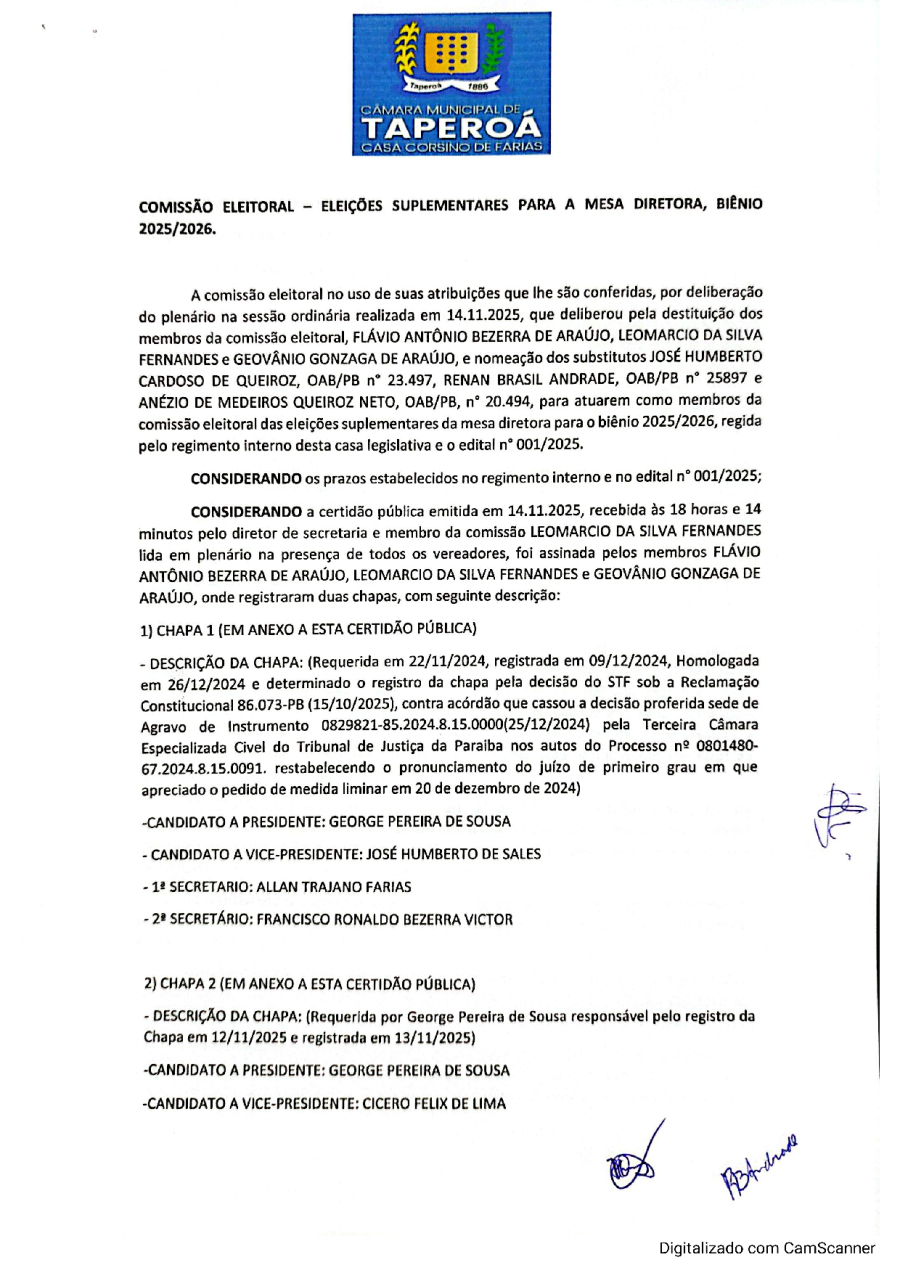COMISSÃO ELEITORAL – ELEIÇÕES SUPLEMENTARES PARA A MESA DIRETORA, BIÊNIO 2025/2026